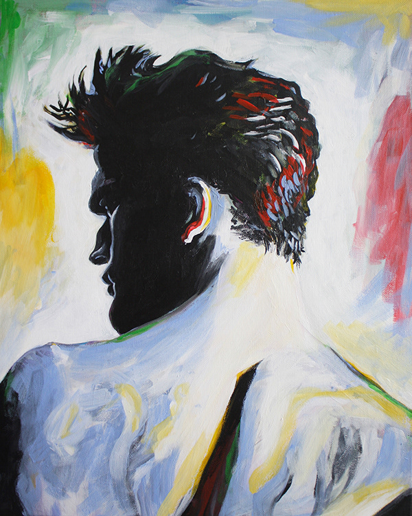 Book cover concept for A SINGLE MAN novel by Christopher Isherwood. The male figure image is an original acrylic painting on canvas and hand-drawn.