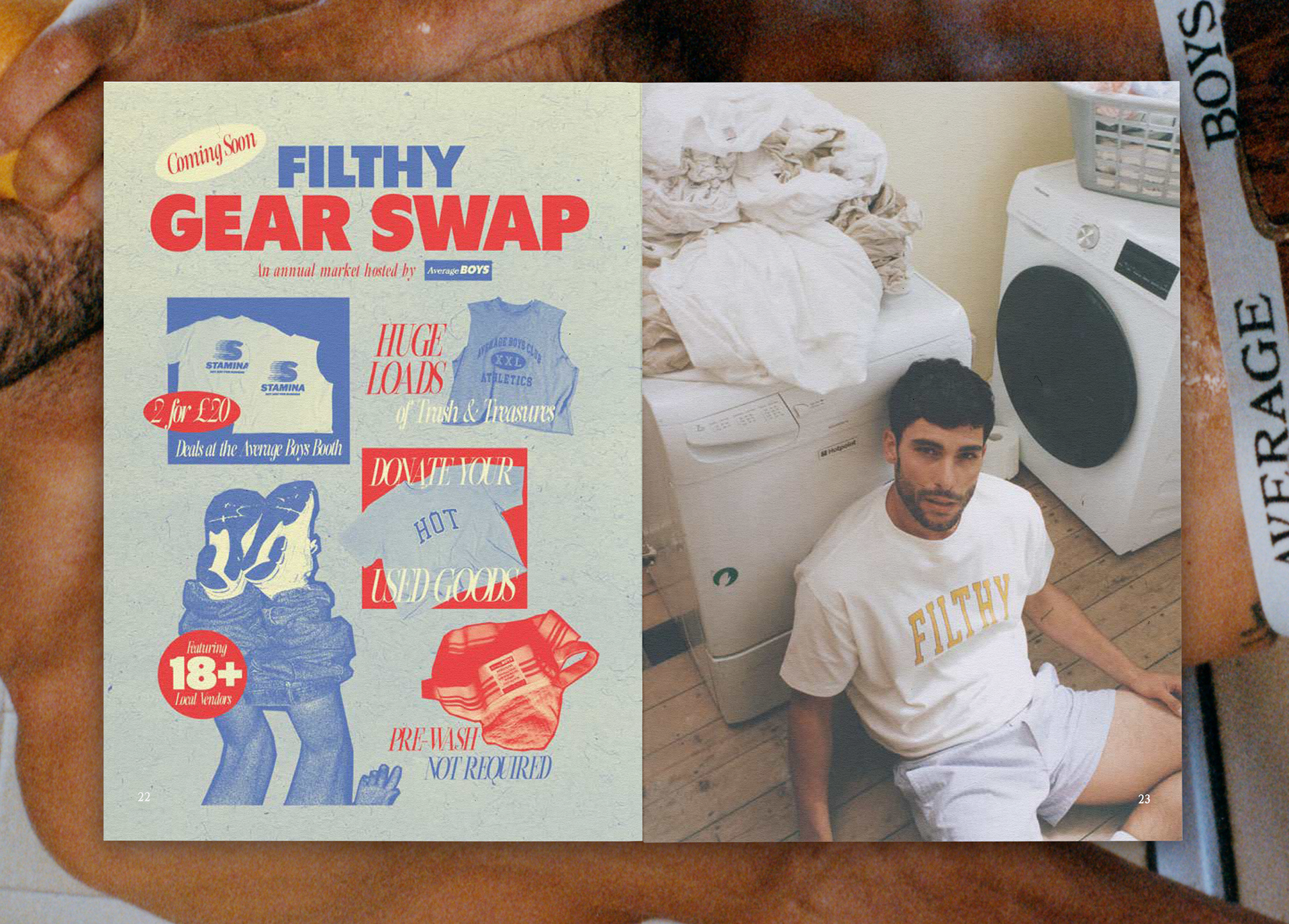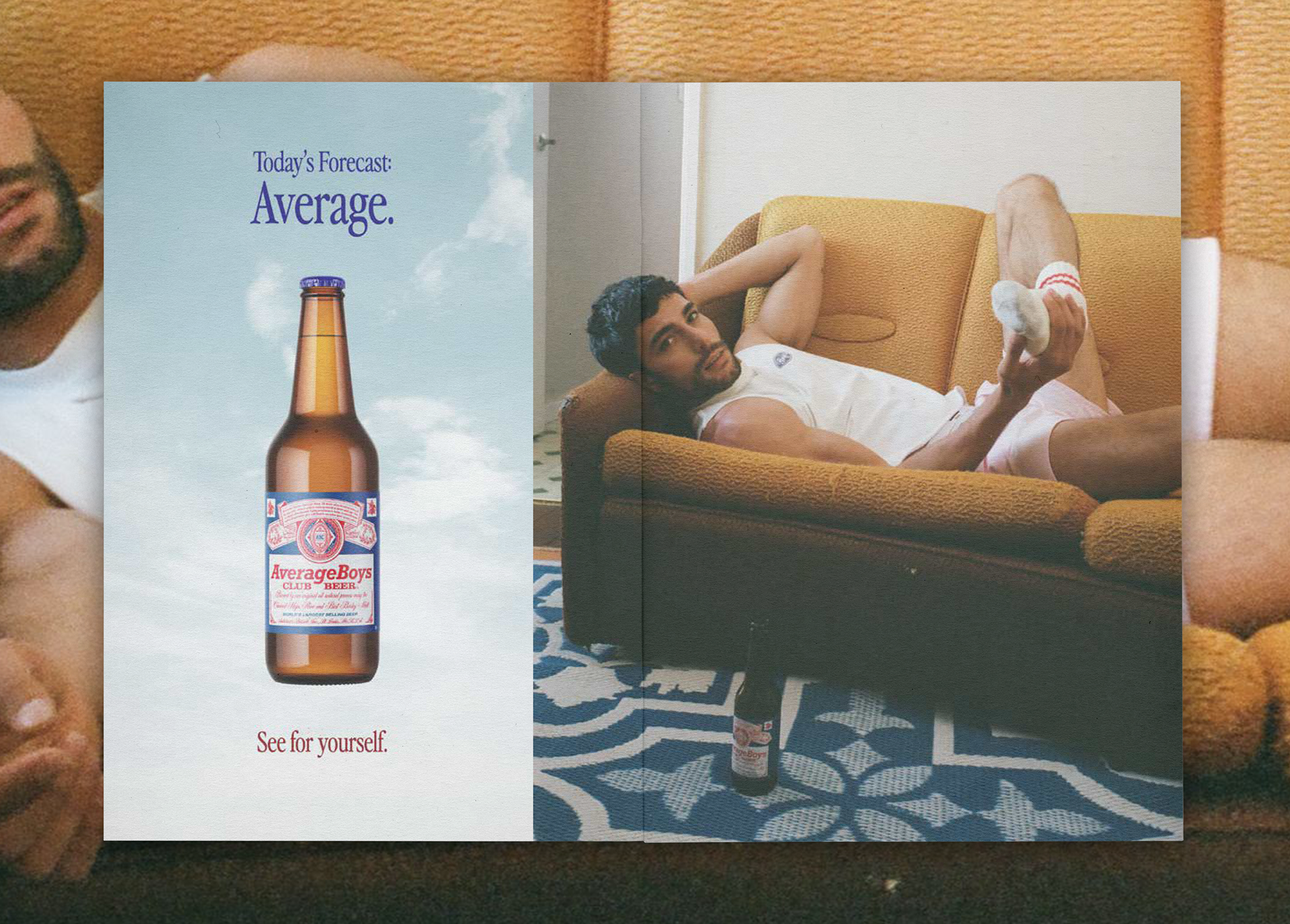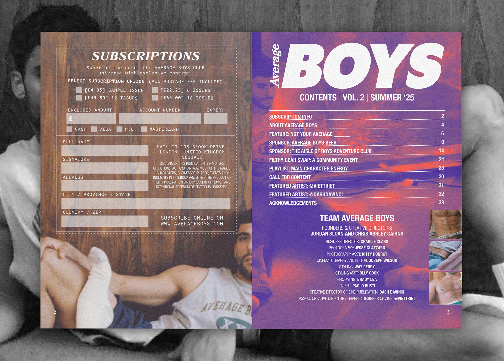 This Zine aims to embrace and invite all curious minds, wandering eyes and daydreaming souls into the expanded universe of Average Boys. The Zine rooted in queer identity, reimagining subcul-tural energy through a modern lens.