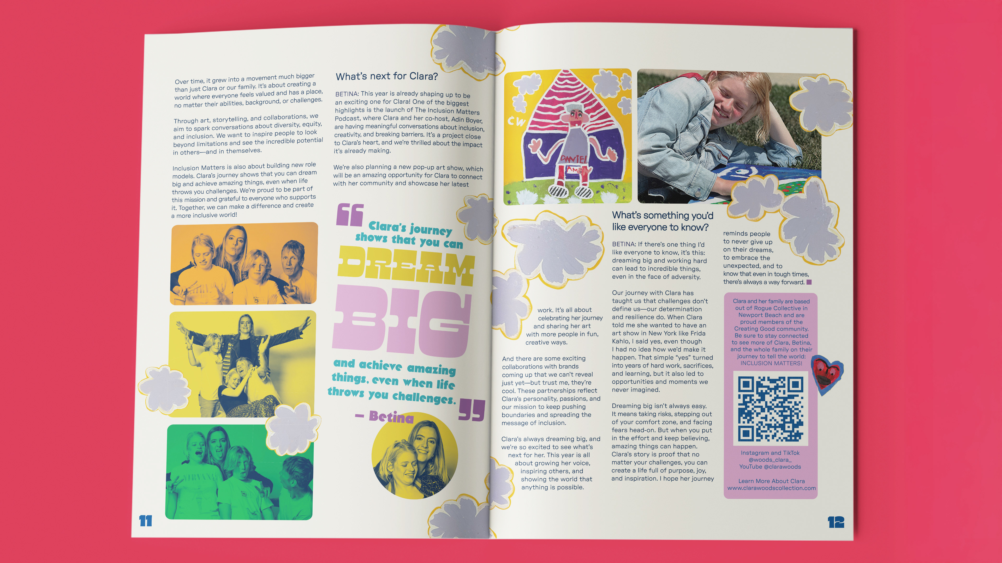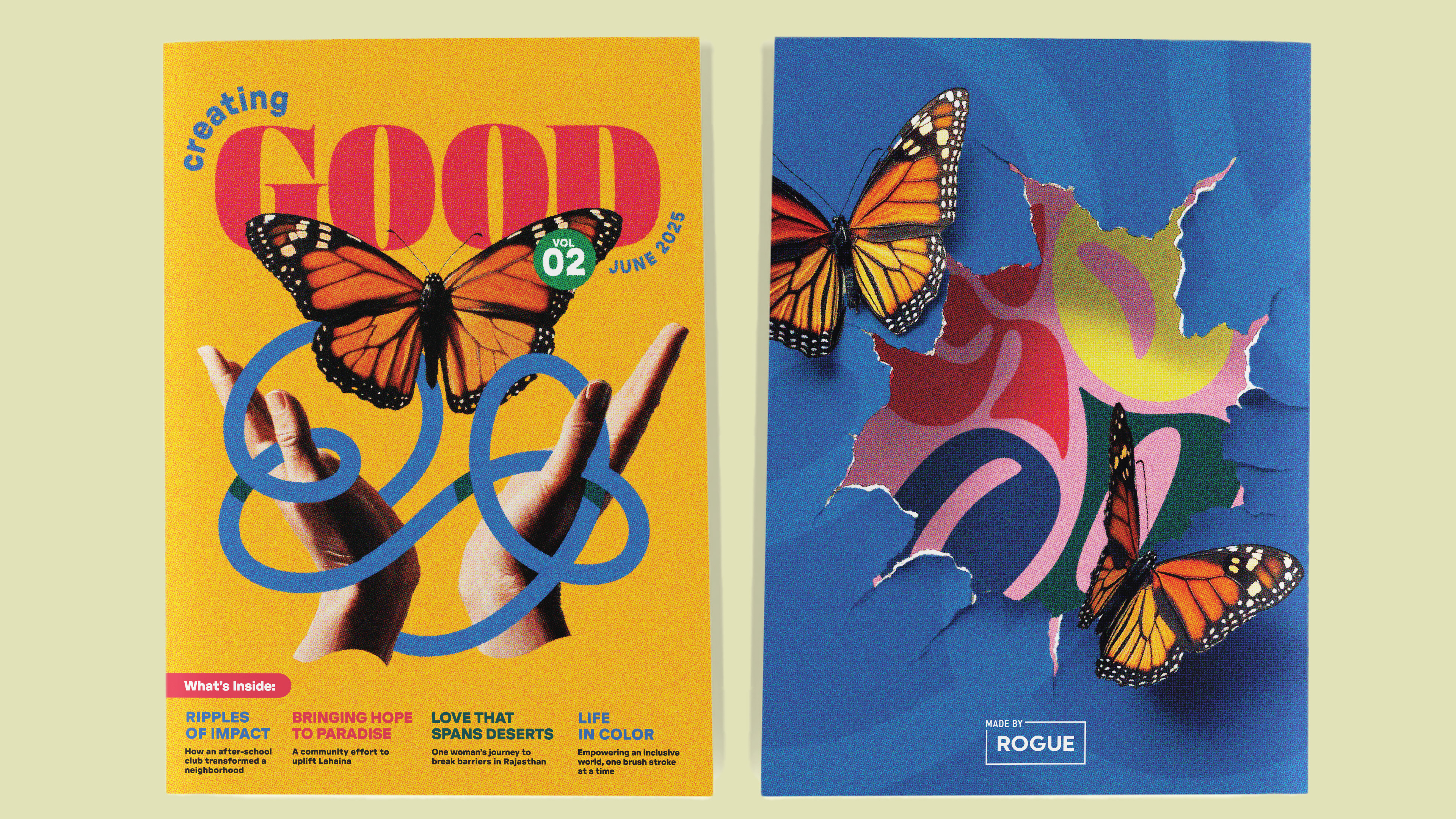 Creative contributions to various spreads for Volume 2 of Creating Good Magazine from Rogue United. This was a collaborative opportunity where the pages layouts with featured stories and various was designed by different creatives.
