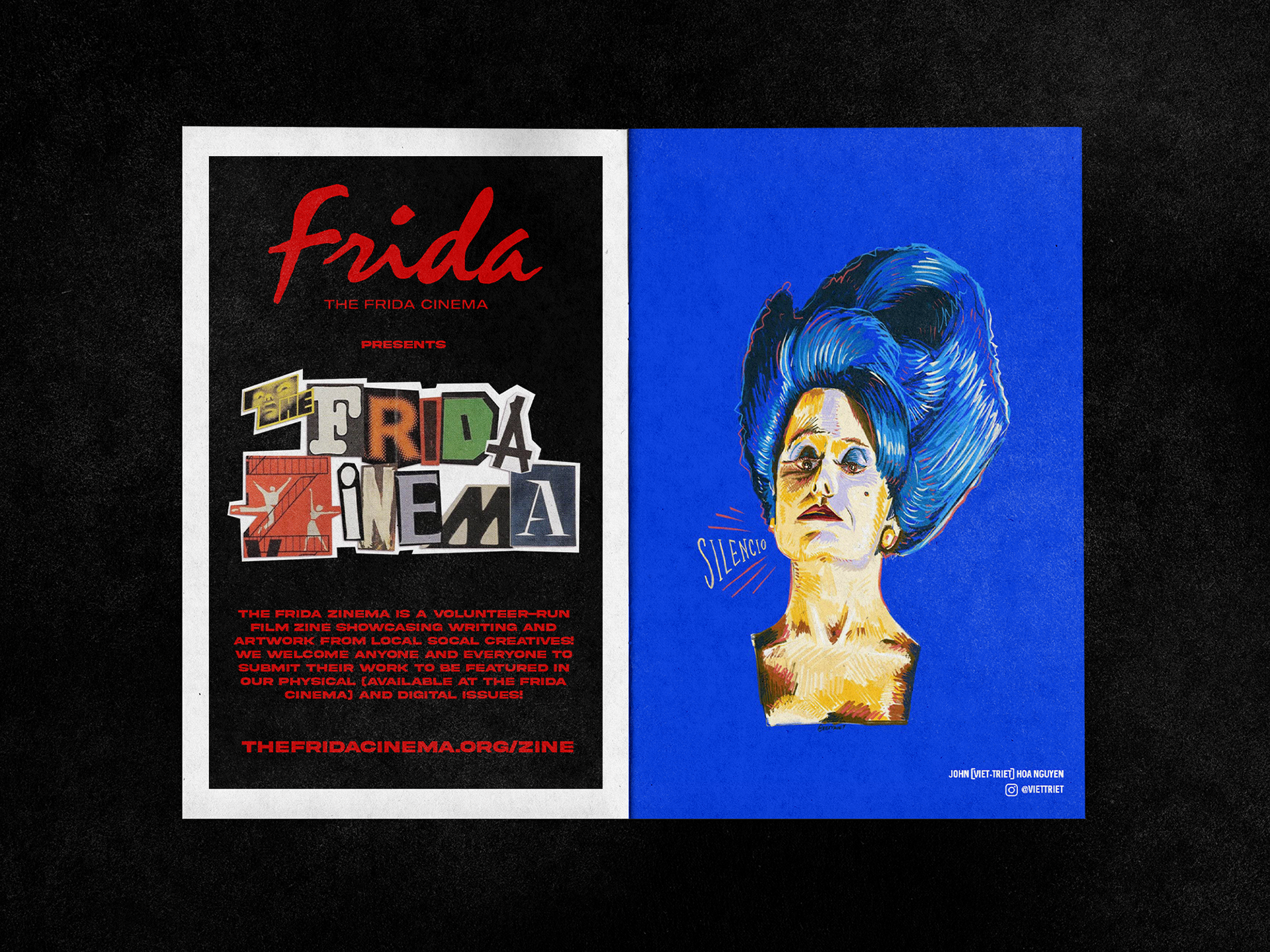 The Frida Zinema is a volunteer-run film zine showcasing writing and artwork from local SoCal creatives! We welcome anyone and everyone to submit their work to be featured in our physical (available at The Frida Cinema) and digital issues!